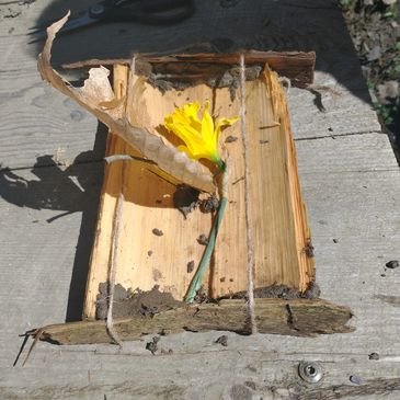 We made musical instruments called Sistrums or Nature's Rattle with sticks and found bottlecaps. Although not all our items are found in nature, they are found objects that are repurposed from trash to treasure.