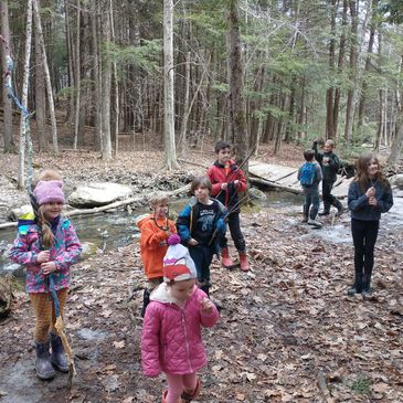 Discovering Salamanders under rocks at the stream. Learning how to carefully place them back into their homes and create fun rock stacks using balance and strategy. This day was wet and full of fun.